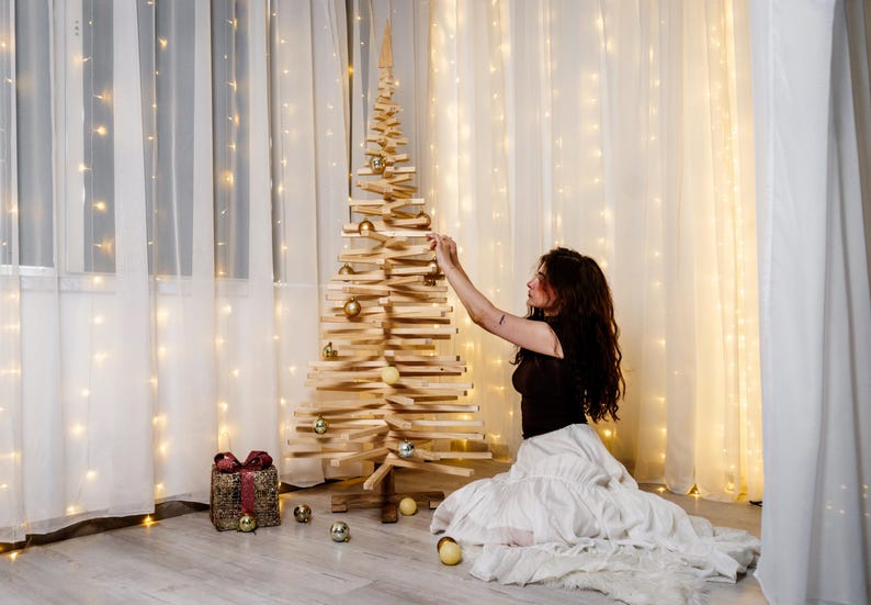 This black wood pallet Christmas tree brings a modern twist to traditional holiday decorating, offering an eco-friendly alternative that stands out with bold character. Crafted from wood, it creates a unique seasonal centerpiece that blends rustic charm with contemporary design.
