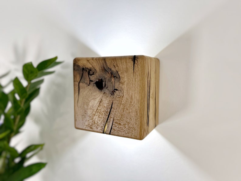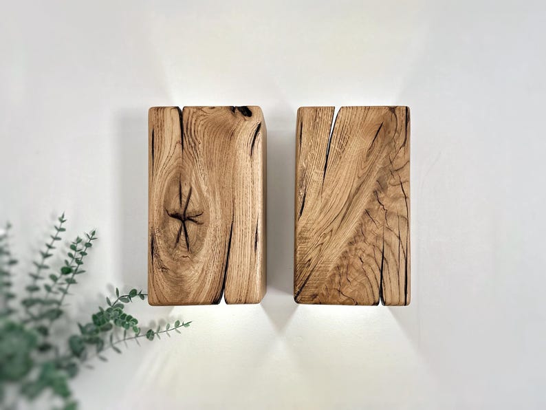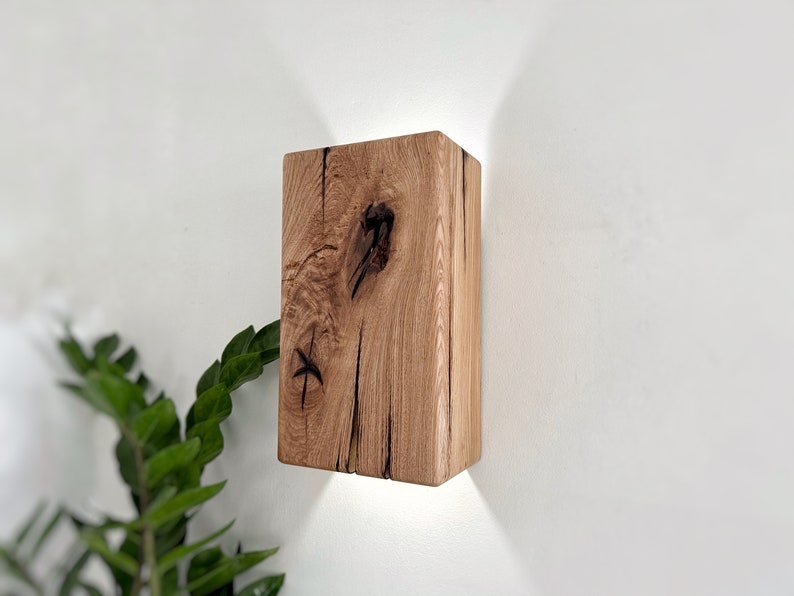 This handmade wooden lamp sconce will make your interior unique. This light fixture combines a contemporary design with a natural feeling, fitting perfectly in any home interior, office, or catering space.