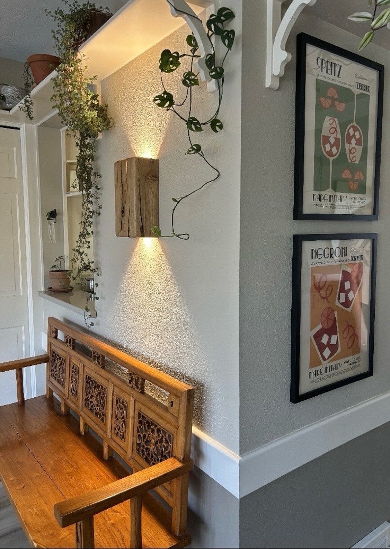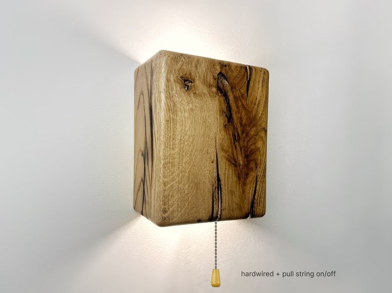 It is a crafted woodworking piece that will inspire your imagination and serve as a perfect addition to your furniture. Available as a plug-in wall sconce or with a hardwired switch fixture.