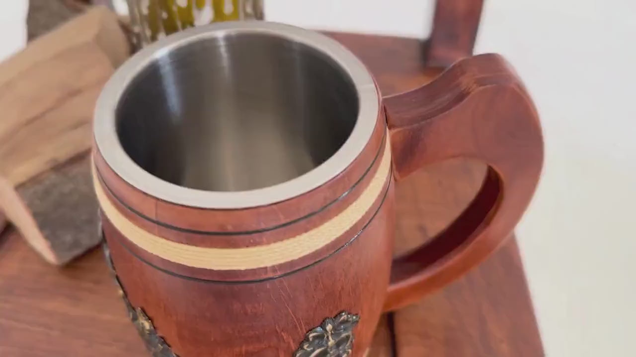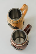 Crafted with an old-world spirit, this medieval beer mug channels the charm of rustic taverns and Viking feasts. Made from solid wood and shaped into a generous stein, it features a sturdy handle and a rich grain that adds warmth and texture. The mug includes a durable stainless steel flask liner for functionality.
