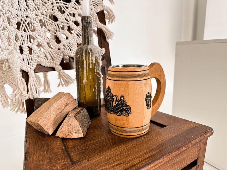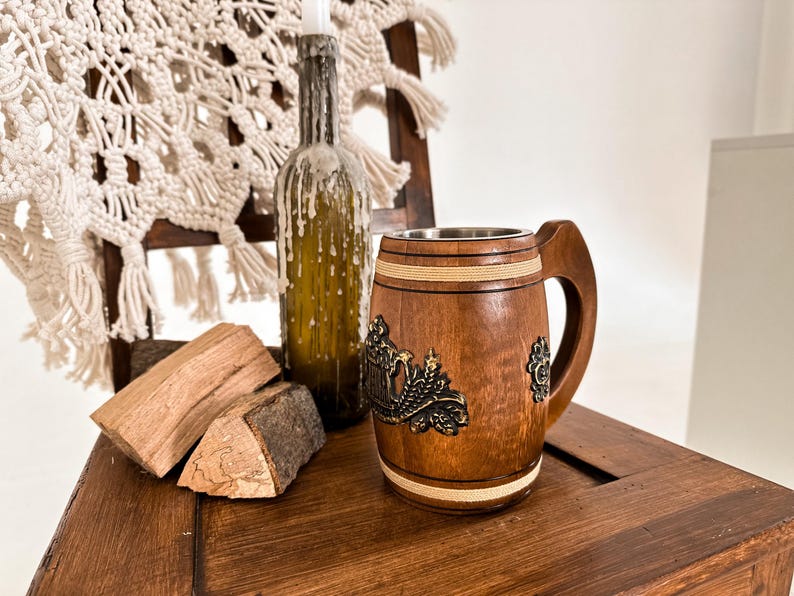 Medieval Wooden Beer Mug: Old-World Spirit for Memorable Toasts
