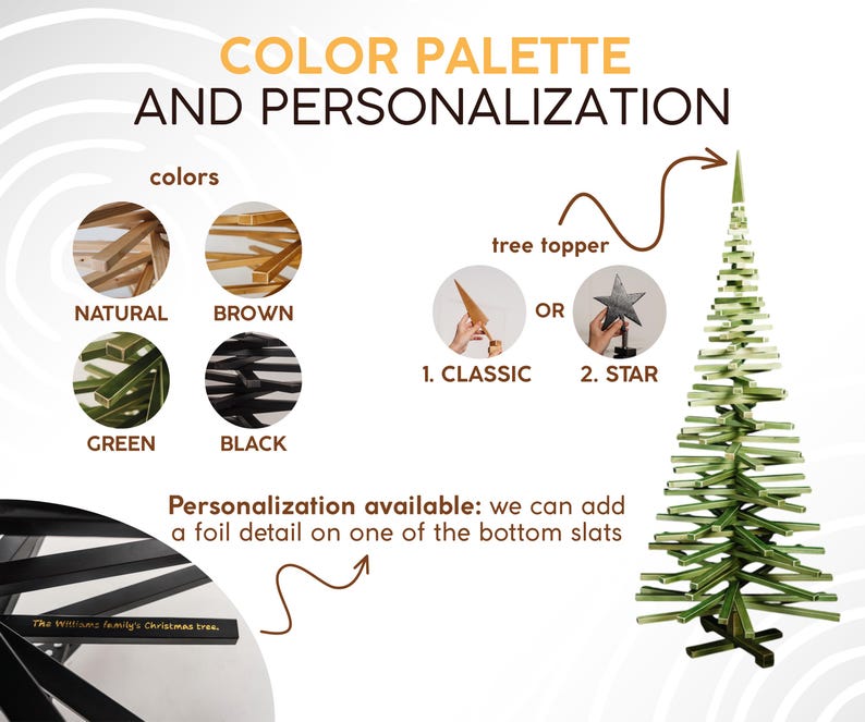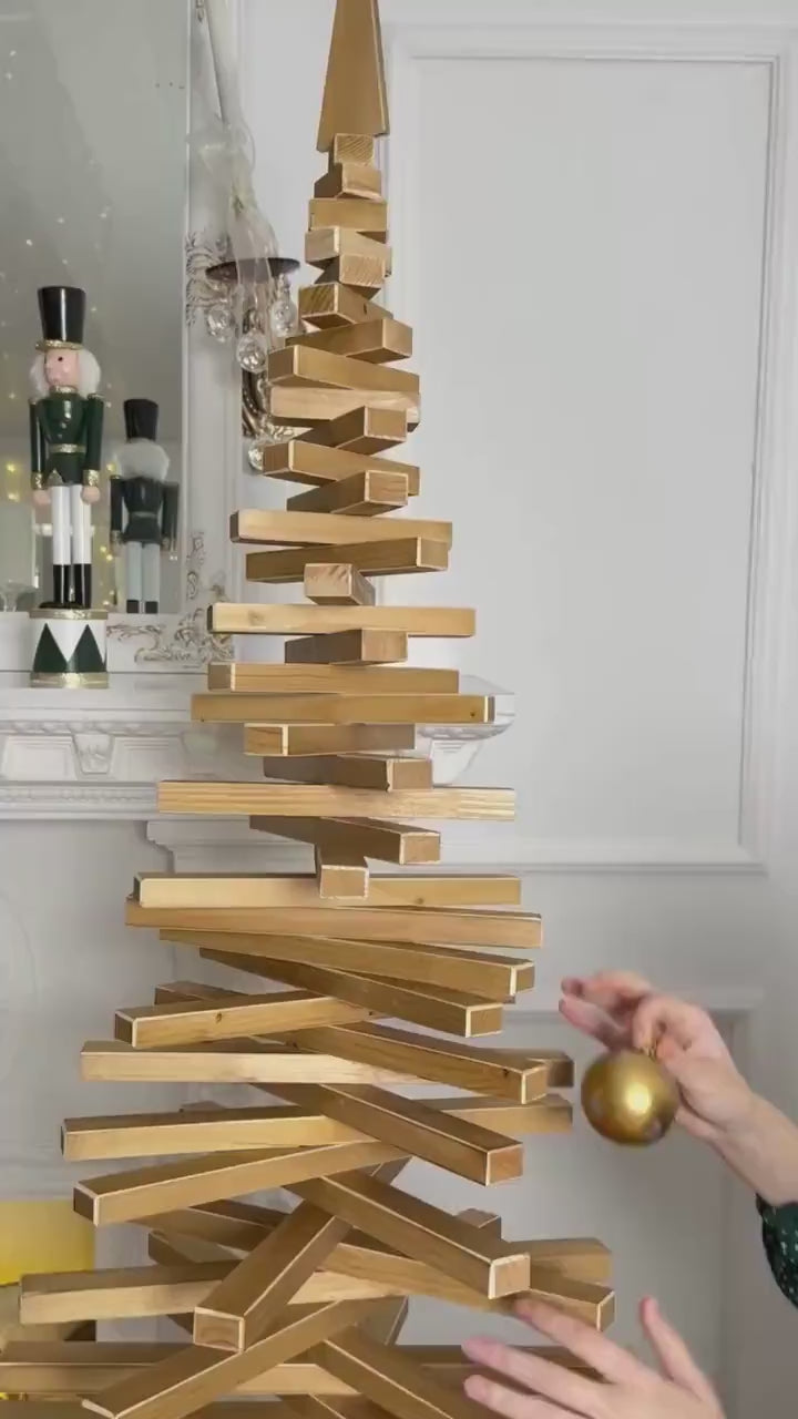 This modern wooden Christmas tree offers a stylish and sustainable alternative to the traditional fir. Crafted from eco-friendly materials (pine wood and plywood), its clean lines and natural finish bring warmth to farmhouse holiday interiors while adding a unique accent to modern homes.